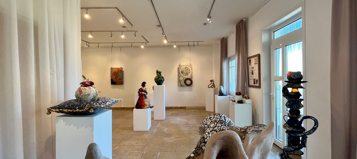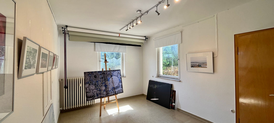 Der große Raum im Erdgeschoss, der aktuell als Ausstellungsraum genutzt wird, ist mit einer weiteren Haustür und zwei Türen innerhalb des Hauses ausgestattet. Dieser Raum lässt sich wunderbar in einen weiteren Wohnbereich im Erdgeschoss umwandeln.